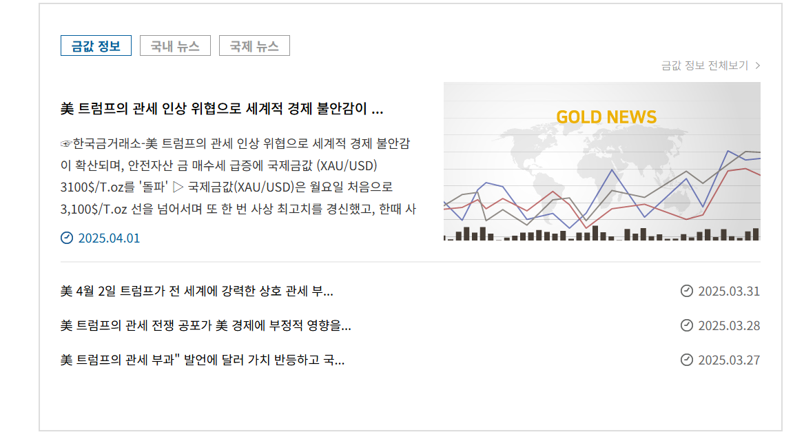 - 국제 금 시세와 국내 금 시세를 동시에 제공