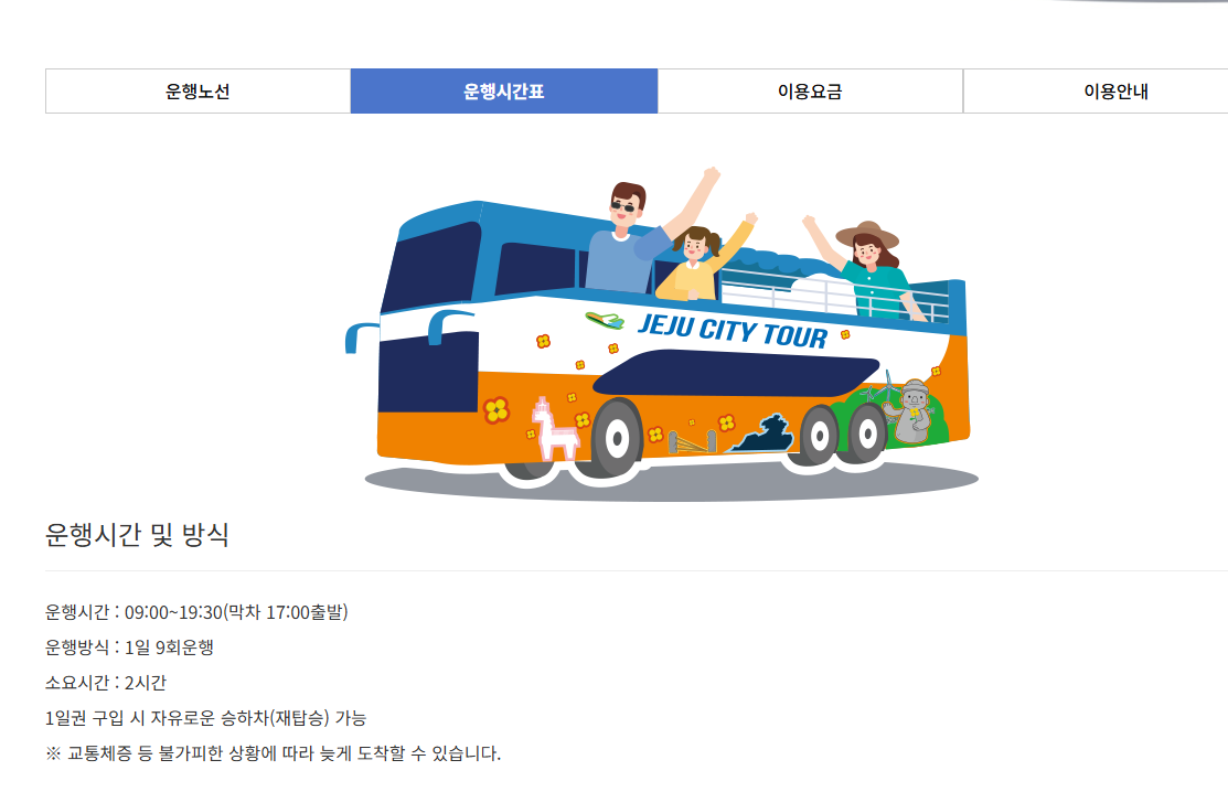 제주 시티투어버스 노선 요금 시간표